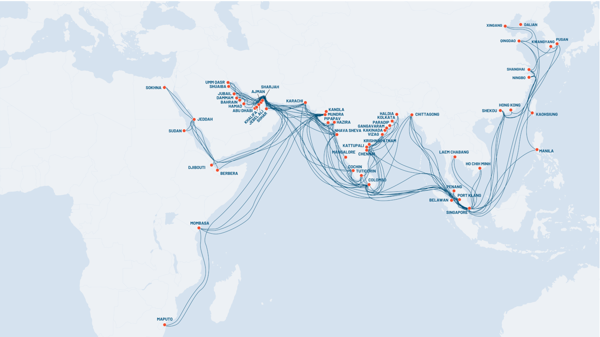 - Present in 23 countries and providing reliable connectivity to 50 ports across Asia, Indian Subcontinent, the Middle-East, and Africa